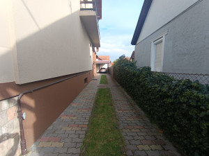 A telken belül fedett beálló két autó számára nyújt biztonságos parkolást.
