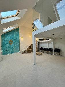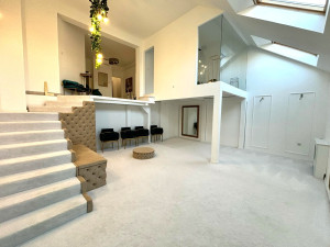 A tetőtéri elhelyezkedésnek köszönhetően az egész lakást természetes fény járja át.
