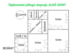 A ház kiváló állapotú, masszív téglaépítésű, a 3 szoba és 2 fürdőszobás praktikus elrendezése pedig ideális nagyobb családok, párok vagy akár céges bérlők számára is.